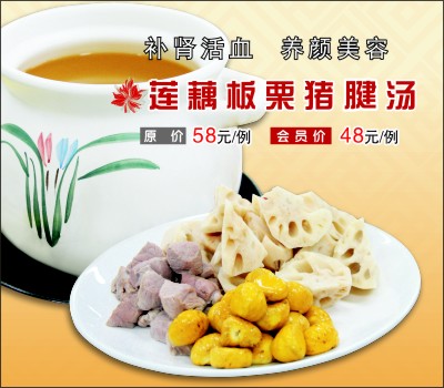 莲藕有补脾益血、养颜美容的功效;板栗则具有补肾活血、益气厚胃的食效,将两者与龙骨、猪腱肉炖制成汤,实为初冬滋补佳品。
