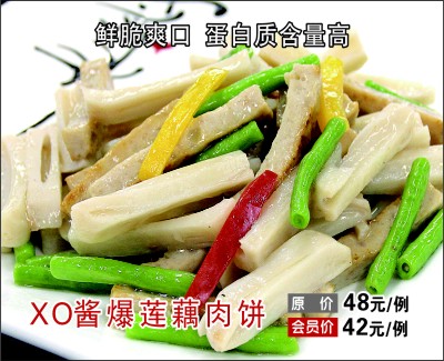 XO酱是采用数种较名贵的材料精制而成,将莲藕、肉饼与XO酱一同炒制,更具味感鲜脆爽口!
