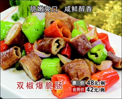 精选优质猪肠,配以青红尖椒烹制而成,,质地脆嫩爽口,咸鲜醇香,食者无不称赞。