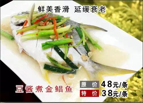 金成大厨将美味豆酱配以金鲳鱼同煮,使其具有益气养血、补肾益精、柔筋利骨之功效。