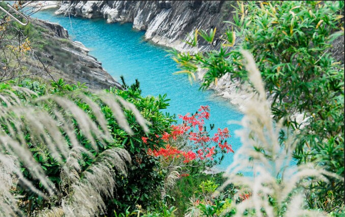那里的水像翡翠一样蓝,峡谷下奇岩风光无限;沿路一边是3.5米深的水渠,一边是上百米深渊的峡谷,走在刺激的45至60公分宽的水渠上,让你小心地行走,深邃的峡谷让人惊心动魄,悠久流水冲刷下的沟壑述说着美、奇、险!时而停下来俯看峡谷底下美丽的风光,时而拍摄下风光无限的美景。